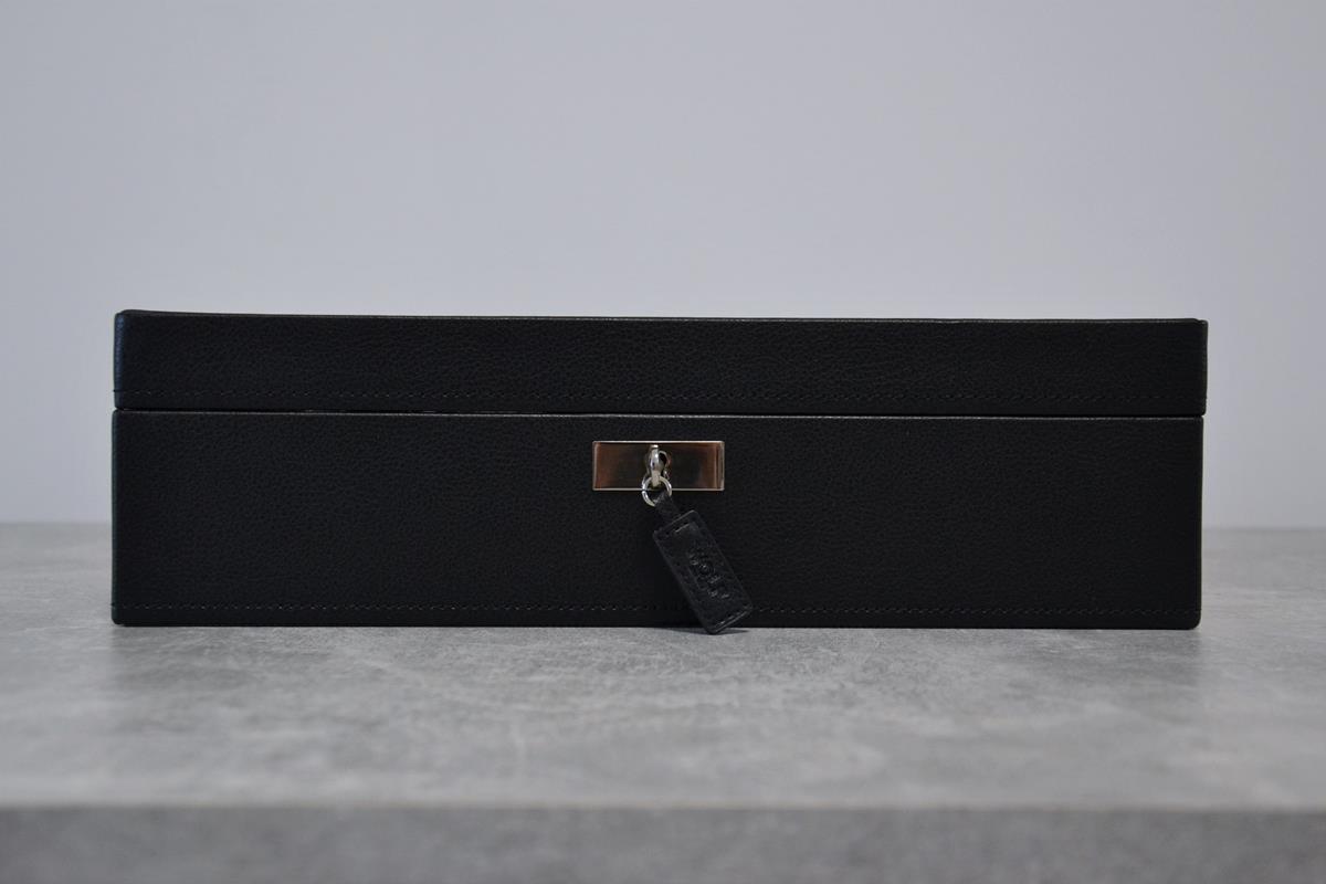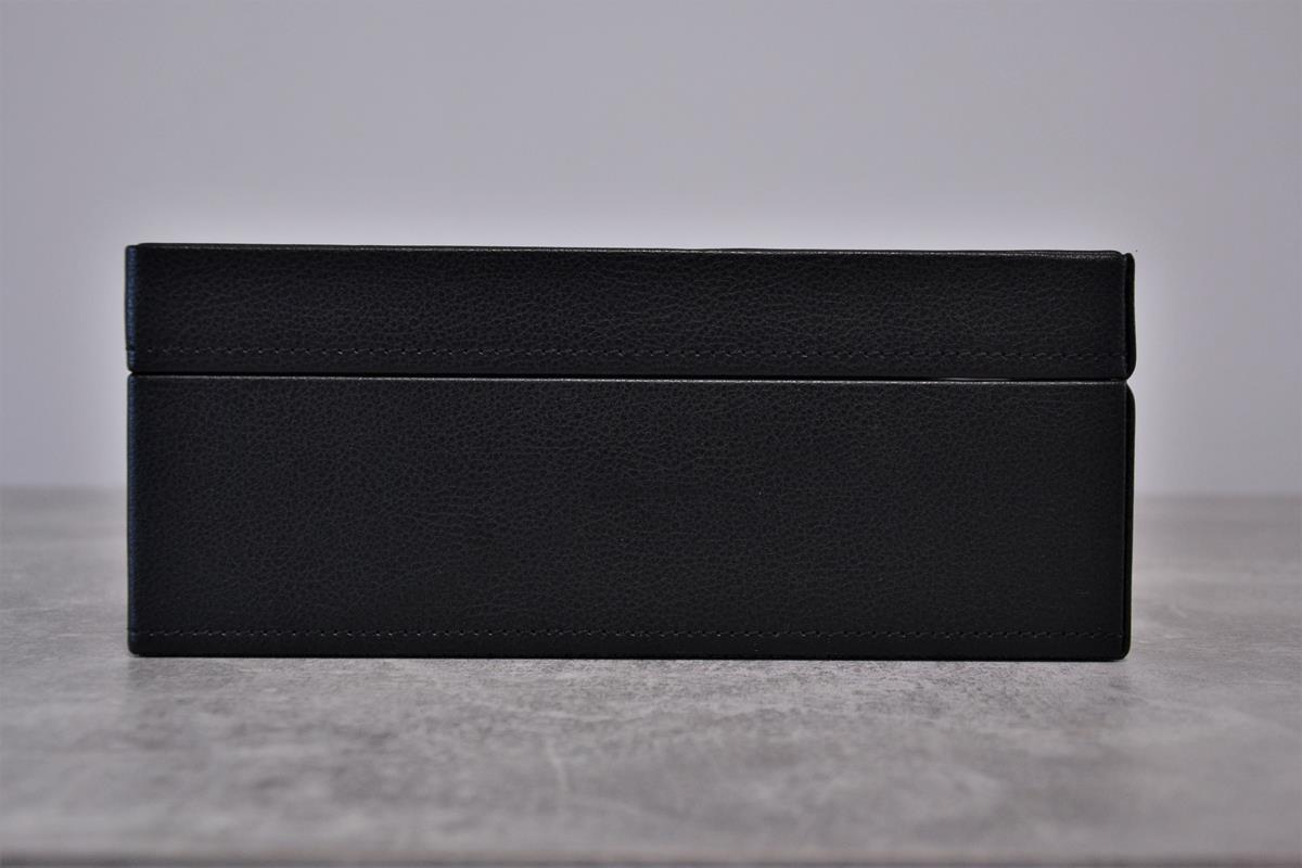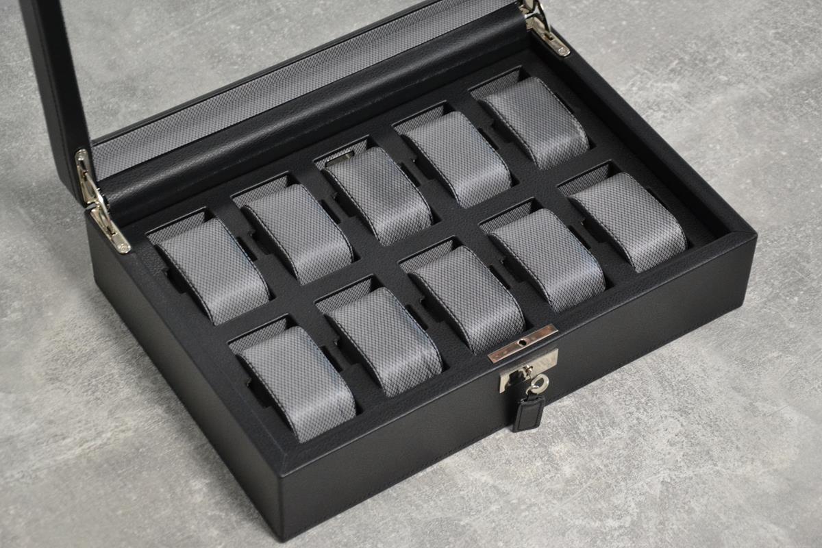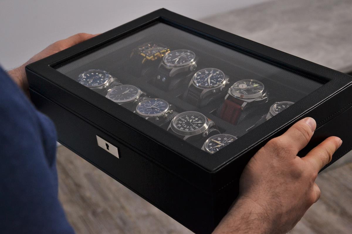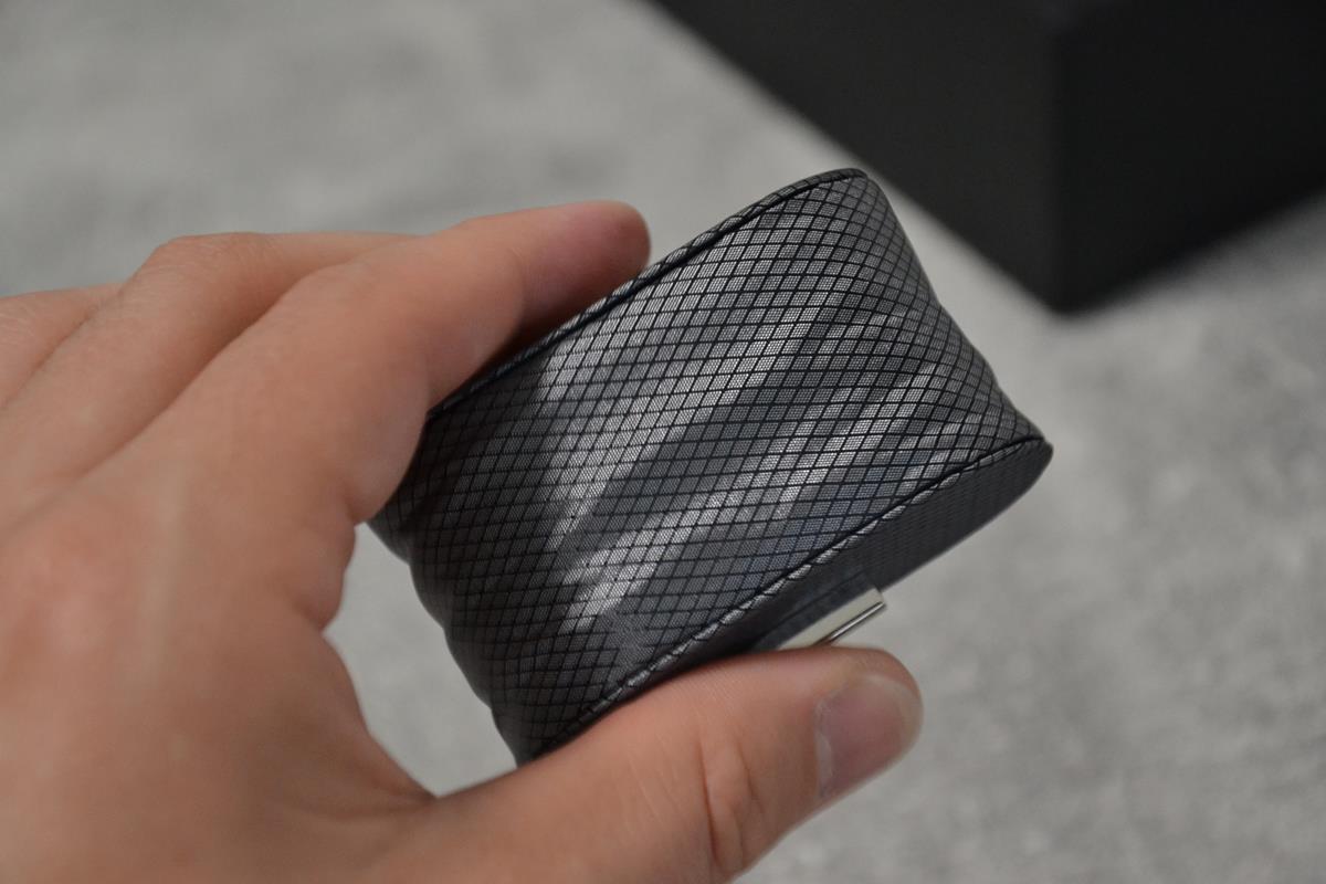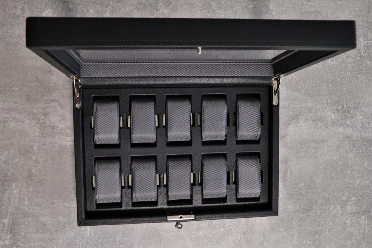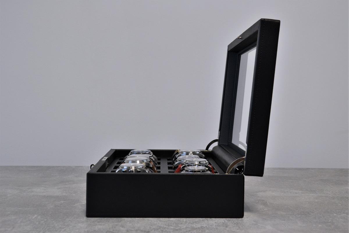In res. Imeli smo prav! Škatla že na otip opraviči svojo ceno. Narejena je iz veganskega usnja v njej pa se skriva 10 blazinic, kamor boste lahko nataknili svoje ure. Blazinice imajo zanimiv sistem, saj se ob pritisku zožijo in delujejo kot nekakšen meh. Takšen način je zagotovo sila priročen, če imate ure na kovinskih zapestnicah, saj omogočajo precej prilagodljivosti.