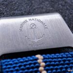 Nad območjem 6. ure je svoje mesto ponovno zavzel logotipom sidra z vrvjo – zaščitni znak Marine Nationale. To sidro nekako pritegne vizualni fokus in tako vpliva na karizmo časomera. Zagotovo je to mesto, kamor sem med preizkušanjem največkrat pogledal. Posledično odločitev glede izvzetega datumskega okna ni bila napačna, saj bi v nasprotnem primeru podrli ravnovesje in bogat minimalizem številčnice.