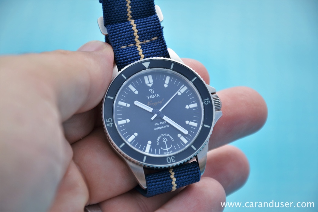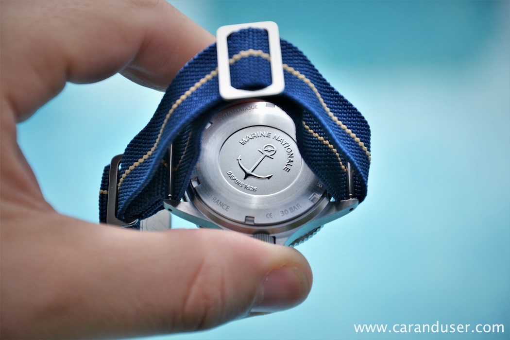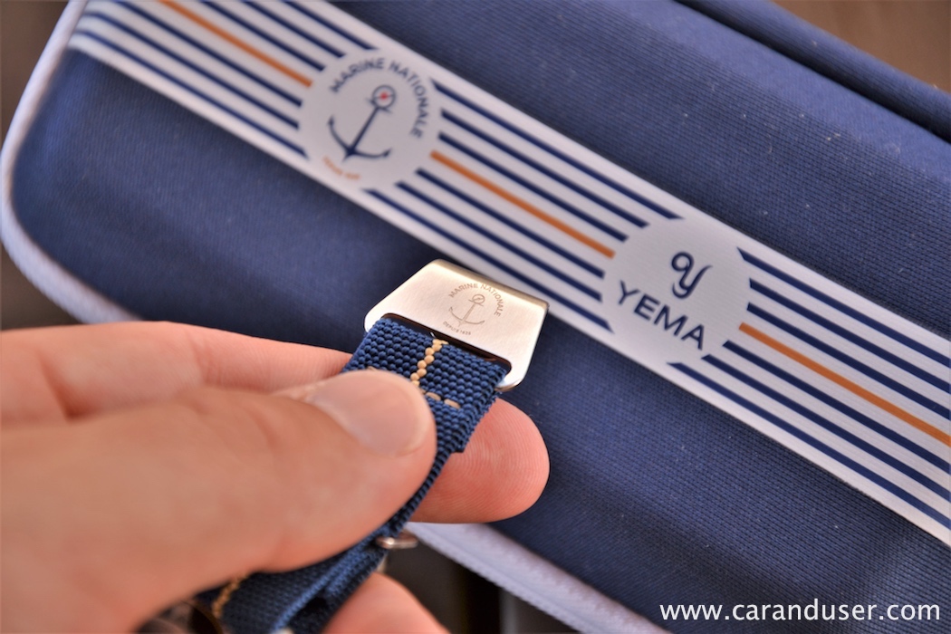 Navduši preprosta in estetska brušena obdelava ohišja, lepo narezljana krona z ulitkom sidra ter zaprta hrbtna stran ohišja z logotipom sidra Marine Nationale, medtem ko nas z dodatnimi gravurami Yema še enkrat opomni na vodotesnost 30 barov/300 m ter francosko poreklo.