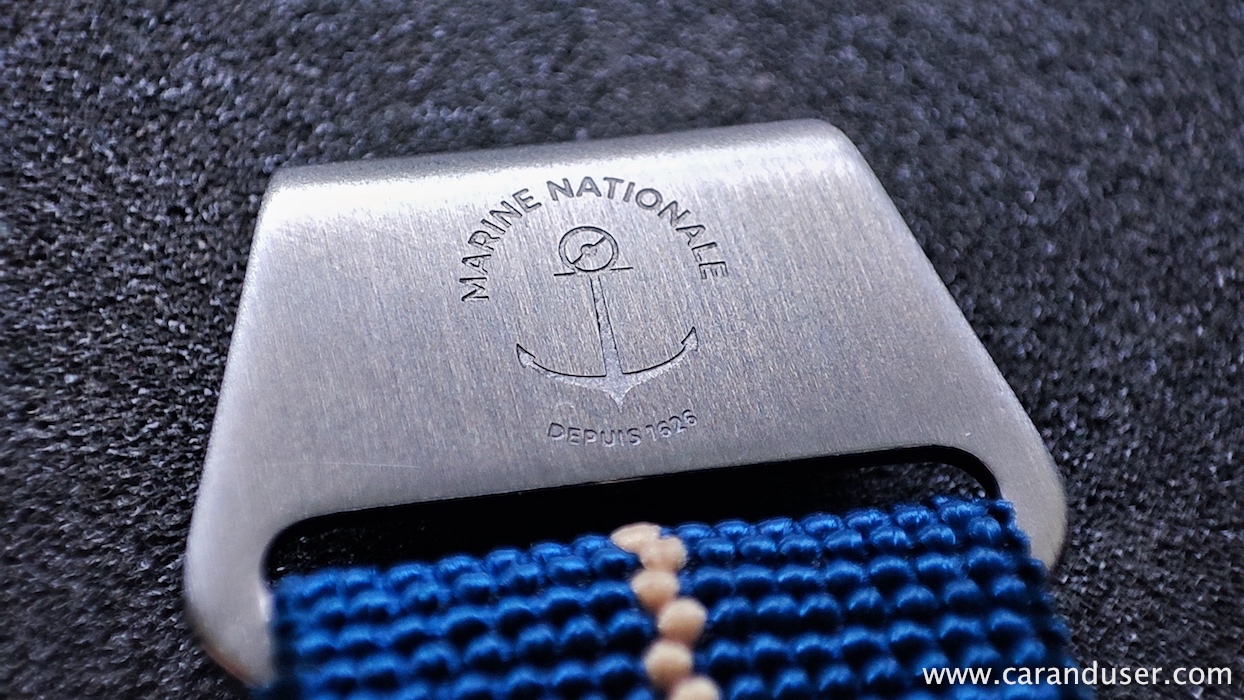 Nad območjem 6. ure je svoje mesto ponovno zavzel logotipom sidra z vrvjo – zaščitni znak Marine Nationale. To sidro nekako pritegne vizualni fokus in tako vpliva na karizmo časomera. Zagotovo je to mesto, kamor sem med preizkušanjem največkrat pogledal. Posledično odločitev glede izvzetega datumskega okna ni bila napačna, saj bi v nasprotnem primeru podrli ravnovesje in bogat minimalizem številčnice.