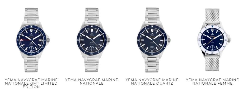 Predstavljeno kolekcijo sestavljajo štirje modeli potapljaških časomerov. Vrh ponudbe pripada različici Navygraf Marine Nationale GMT. Omejena serija 1.000 primerkov se ponaša s premerom ohišja 39 mm, safirno luneto s 24 urno skalo ter posledično mehanizmom s funkcijo GMT. Tako številčnica kot luneta sta prevlečeni s Super LumiNova, medtem ko je vodotesnost odmerjena na 300 m oziroma 990 ft. Ura ima jekleno zapestnico z značilno H zaponko, dodan pa je še moder tekstilni trak. Komplet omejene različice je na voljo po ceni 1.049 evrov.