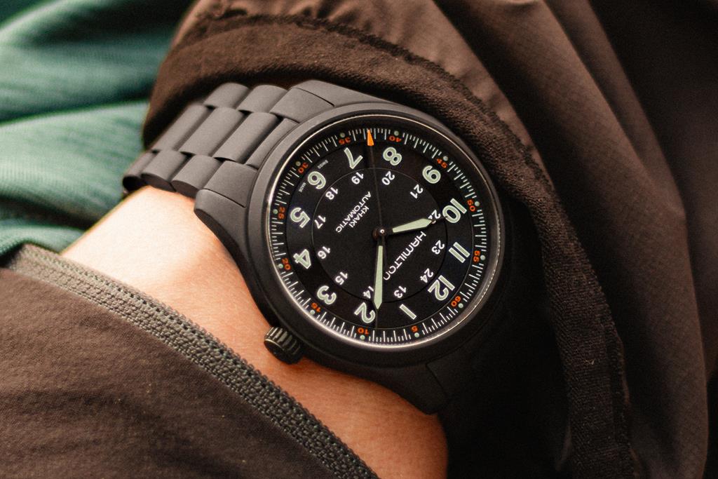 Ena izmed najbolj priljubljenih kolekcij švicarske znamke je serija Khaki Field, ki vsebuje vojaško navdahnjene ure v različnih slogih in materialih. Trenutni nabor obsega kar 55 različnih modelov z ročno navijalnimi ali avtomatskimi mehanizmi ter jeklenimi, bronastimi ali titanovimi ohišji. Slednji so pred nekaj leti vstopili v portfelj, kateremu zdaj dodajajo še referenci z zapestnicama iz titana.