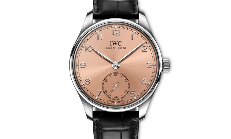 IWC redko eksperimentira z barvami številčnic, saj je predstavljeni Portugieser Automatic 40 šele tretja številčnica v barvi lososa, v moderni interpretaciji švicarske znamke. Pred tem sta jo ponosno nosila le modela Ingenieur in GST, če gre verjetni informacijam svetovnega spleta. Posebnost nove različice je torej rožnata barva številčnice, s teksturo v obliki sončnih žarkov. Celoto dopolnjujejo z rodijem prevlečeni kazalci in indikatorji ur ter črn aligatorjev pašček.